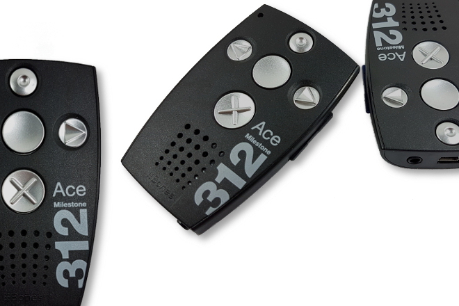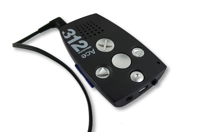 Milestone 312 Ace er en avanceret, men brugervenlig DAISY- og multimedieafspiller, der er designet til personer med synsnedsættelse. Mes MIlestone 312 Ace kombinerer du muligheden for at have en DAISYafspiller, men samtidig Tekst-til-Tale, Stemmeoptager, FM-Radio, Alarm, Kalender og Musikafspiller. Alt sammen i en enhed der ikke måler mere 8,5 x 5,4 x 1,4 cm og som kun vejer 53 gram.