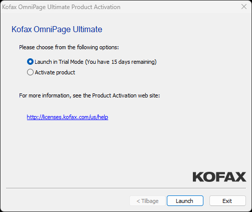 Vær gerne opmærksom på at selve OmniPage Ultimate er på engelsk.