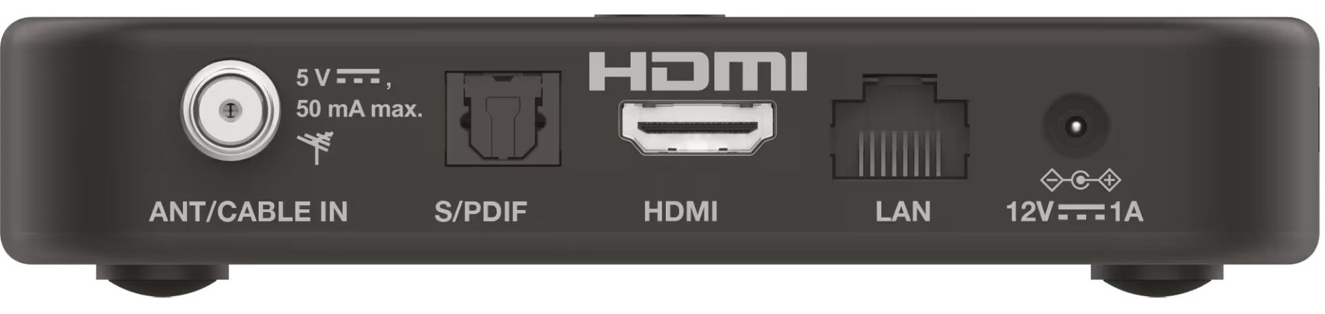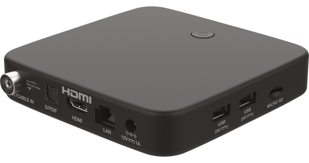 Denne TV boks understøtter både DVB-C antenne, DVB-T2 antenne og diverse streamingtjenester.